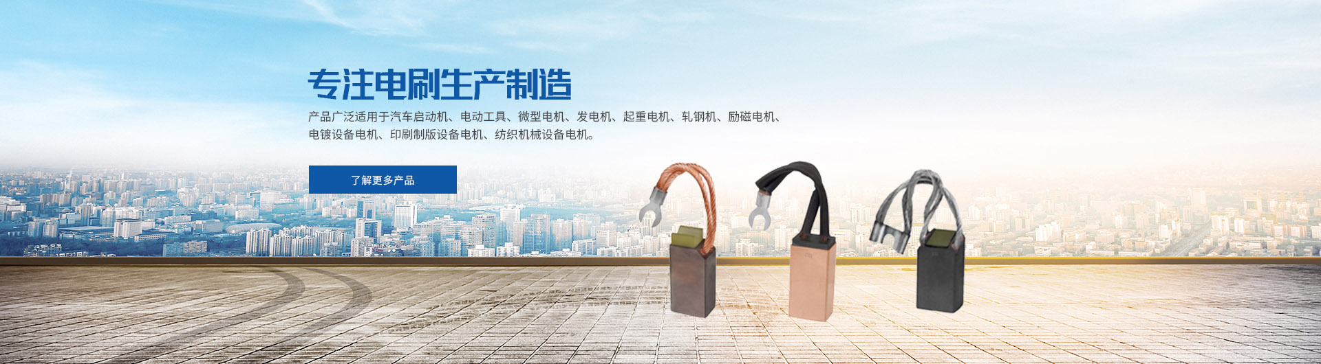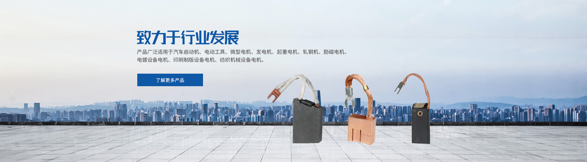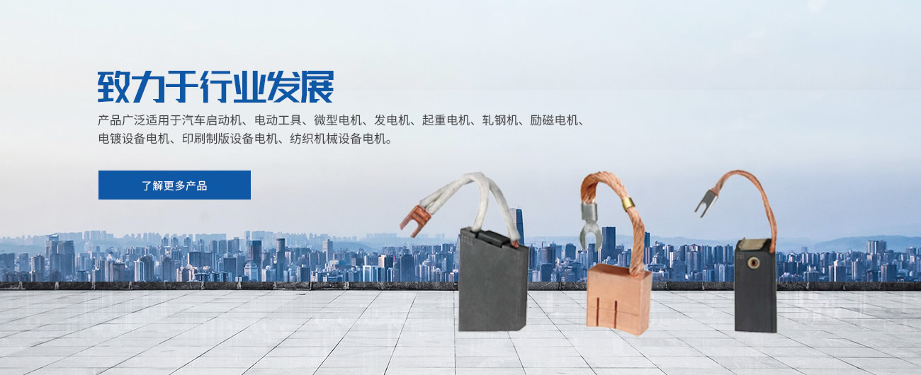 主要产品有:汽车用碳刷、摩托车用碳刷、电动工具用碳刷、微电机用电刷、发电机用电刷、电动机用电刷、铁路机车电机用电刷、工业机械设备用电刷等。产品广泛应用于电力、治金、煤炭、石油、化工、水泥厂、造纸厂等行业。